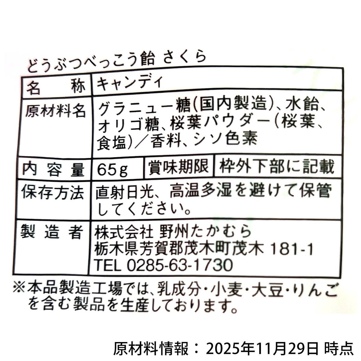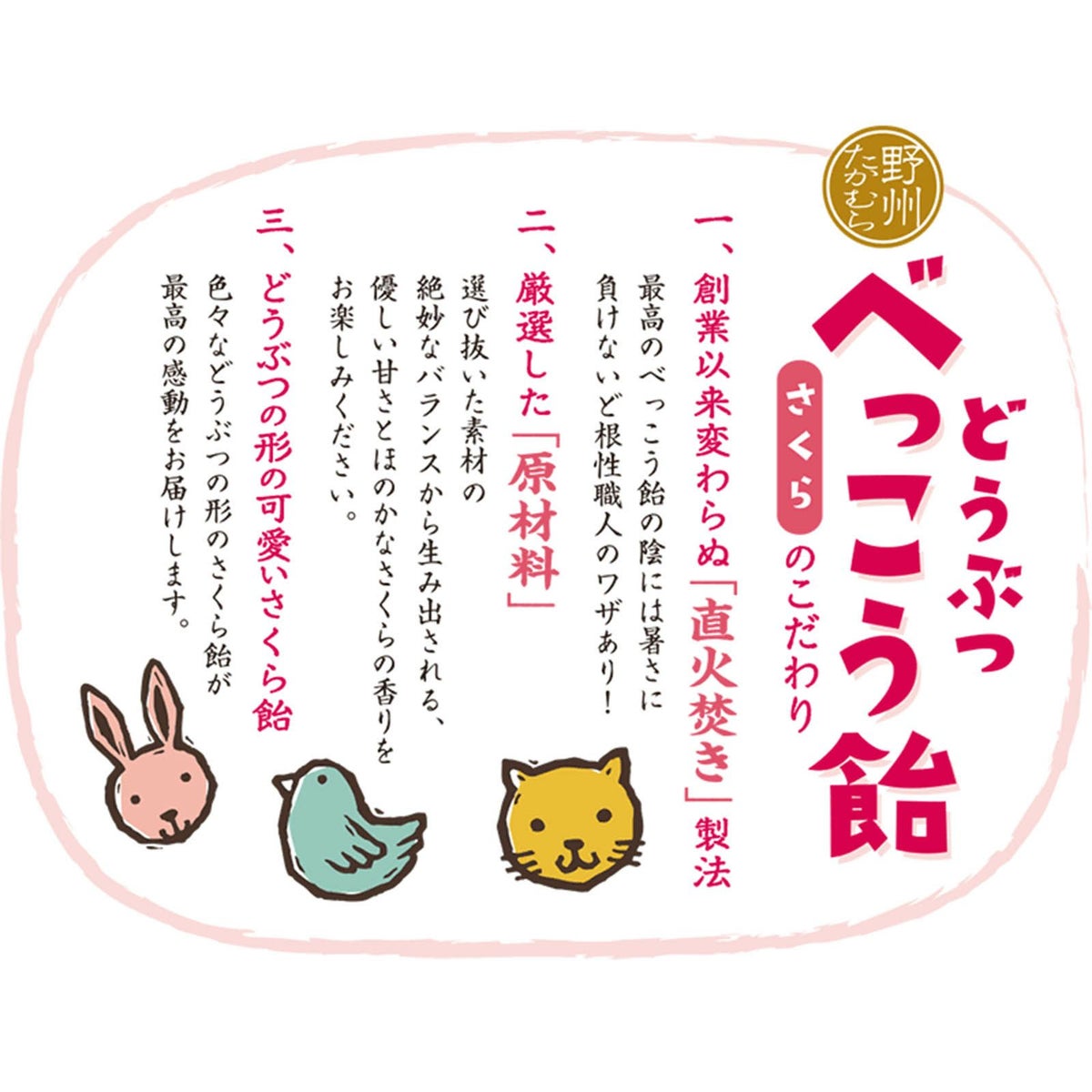 他の画像を見る 【厳選素材・香料・着色料不使用】職人技でつくった優しい甘さのべっこうあめ どうぶつべっこう飴 さくら 65g { 駄菓子 お菓子 飴 あめ アメ キャンディ 桜 春 花見 べっこうあめ 動物 どうぶつ アニマル }{ お菓子 おかし おやつ 問屋 飴 あめ アメ キャンディー }[25K03][dmo] メーカー希望小売価格 ¥ 238 のところ 当店特別価格 ¥ 202 税込 カートに入れる お気に入りに登録する