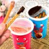 つけつけペロッ!!スティックビスケットをクリームにつけて食べる楽しいお菓子です。