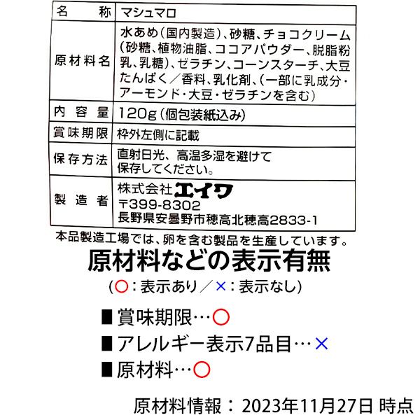 他の画像を見る 1個装あたり約10.6円(約11.5円税込)x約80個装入=850円(918円税込)エイワのロングセラー商品☆コスパ良しの業務用菓子 エイワ 大袋 チョコマシュマロ 360g(約80個装入) { 駄菓子 お菓子 マシュマロ チョコ 徳用 業務用 }{ おかし おやつ 景品 お祭り 縁日 問屋 子供 子供会 自治会 詰め合わせ 大量 まとめ買い 保育園 幼稚園 パーティー イベント 配布 }[25K02][dmo] メーカー希望小売価格 ¥ 1,080 のところ 当店特別価格 ¥ 918 税込 カートに入れる お気に入りに登録する