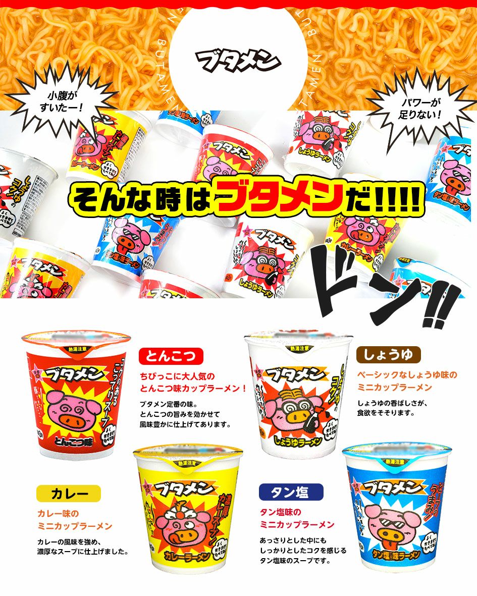 他の画像を見る 1個あたり約83.3円(90円税込)x15個入=1250円(1350円税込)ベビースター ラーメン カップ麺 カップラーメン ブタメン 全4種類 15個入 { 駄菓子 お菓子 ベビースターラーメン ベビースター ぶためん }{ 子供会 景品 お祭り 縁日 問屋 }[25I01][dmo] メーカー希望小売価格 ¥ 1,588 のところ 当店特別価格 ¥ 1,350 税込 カートに入れる お気に入りに登録する