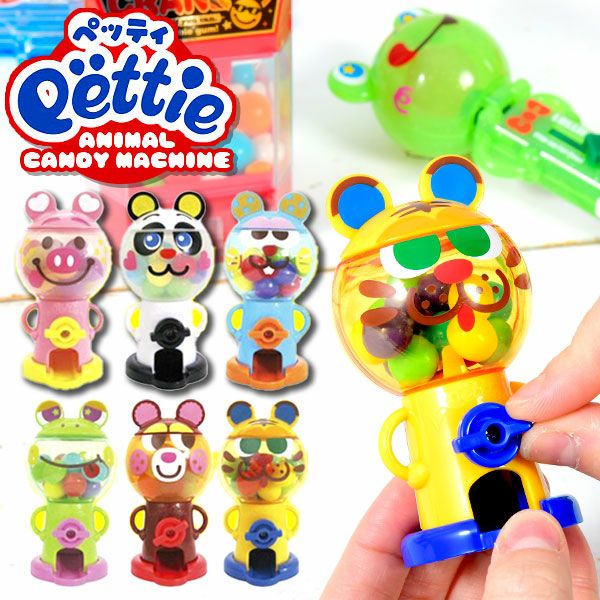 ハンドルを回すと『ラムネ』が出るよ!かわいいどうぶつの形のかわいいマシーンです。