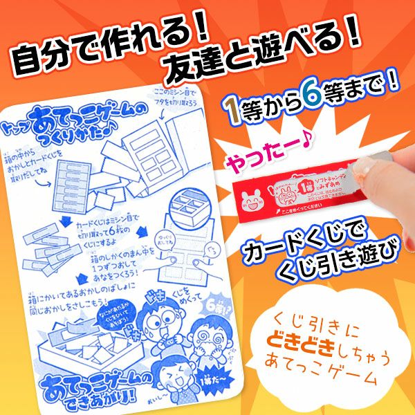 他の画像を見る 単価128円(138.2円税込)x10個入=1280円(1382円税込)くじ引きゲームができる! コリス トップ あてっこ ゲーム 10個入 { 駄菓子 お菓子 くじ クジ カードくじ }{ 子供会 景品 人気 子供 お祭り 縁日 イベント くじ引き 福引き お菓子 おかし おやつ 配布 }[22B23] メーカー希望小売価格 ¥ 1,620 のところ 当店特別価格 ¥ 1,382 税込 カートに入れる お気に入りに登録する
