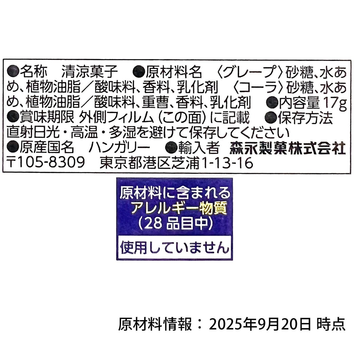 他の画像を見る 泡がシュワシュワ!!ソーダのさわやかな刺激がクセになる!! コリス あわソーダ つりさげラムネ 9連 { 駄菓子 お菓子 小分け 食べきり 食べ切り おやつ ラムネ ラムネ菓子 泡 ソーダ 人気 吊り下げ }{ 子供会 景品 お祭り くじ引き 縁日 個装 個包装 配布 }107[24J25] メーカー希望小売価格 オープン価格 のところ 当店特別価格 ¥ 97 税込 カートに入れる お気に入りに登録する