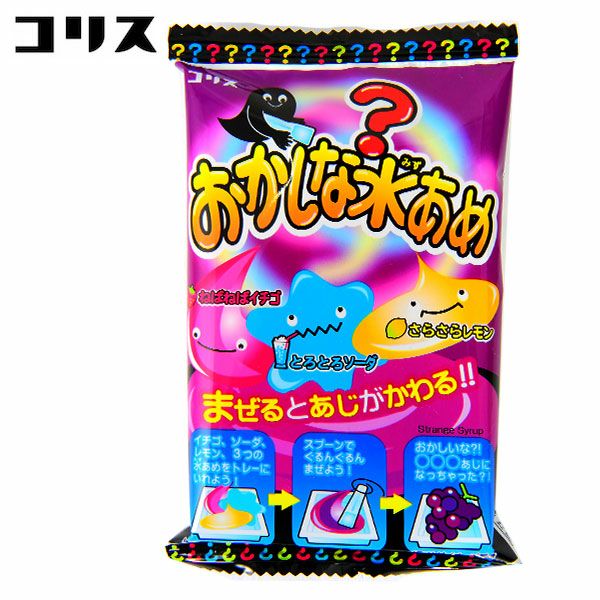 まぜると味が変わる、ふしぎな水あめ♪イチゴ、ソーダ、レモン、3つの味を合わせると・・・味も色も変わるふしぎな水あめだよ!