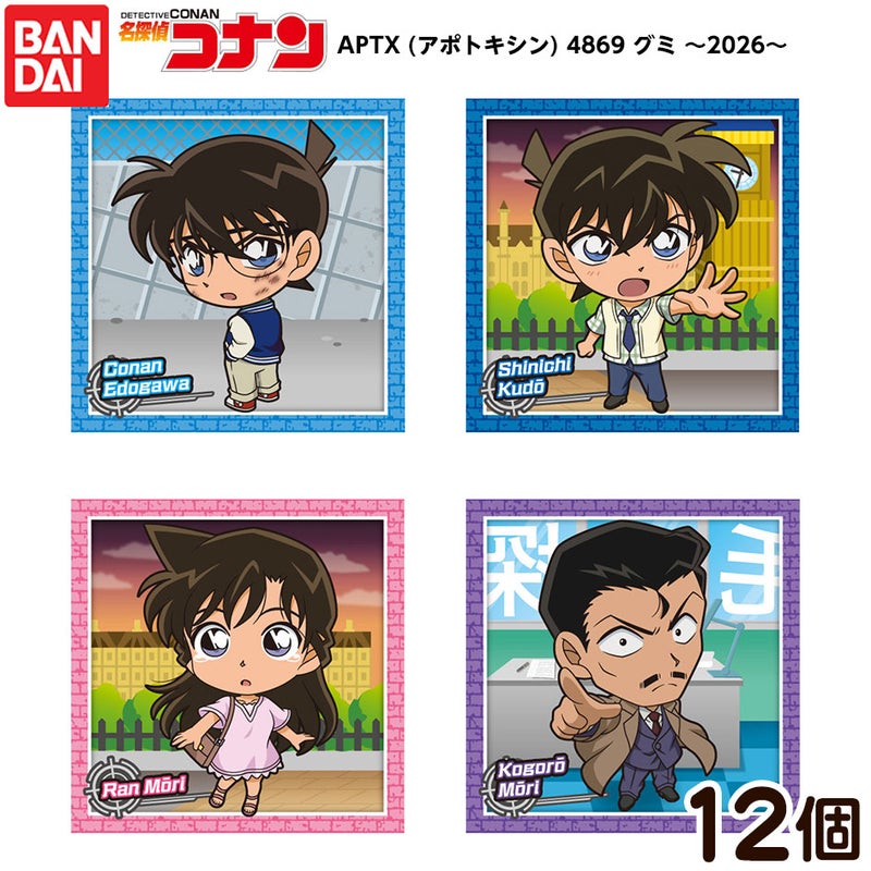 シール付グミ大人気作品「名探偵コナン」の、物語のキーアイテムである「APTX(アポトキシン)4869」を模したモールドグミとメタリックシールがセットになった商品です。