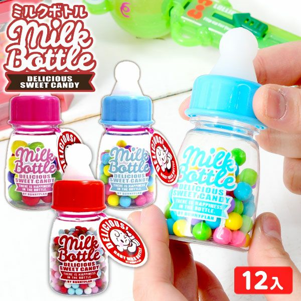 お菓子が入ったかわいい『哺乳瓶』かわいいミルクボトル型容器にカラフルなかわいいラムネやミンツ入り。