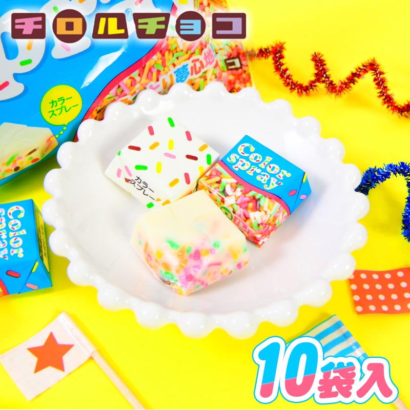 まろやかミルキーなミルク風味チョコにカラースプレーをちりばめ、お菓子にカラースプレーがかかっているとワクワクしてしまう楽しさと美味しさをチロルで再現しました♪