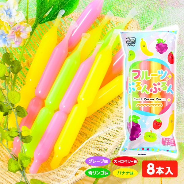 凍らせても、そのままでも美味しい!ストロベリー、グレープ、バナナ、青リンゴの4種テイスト!