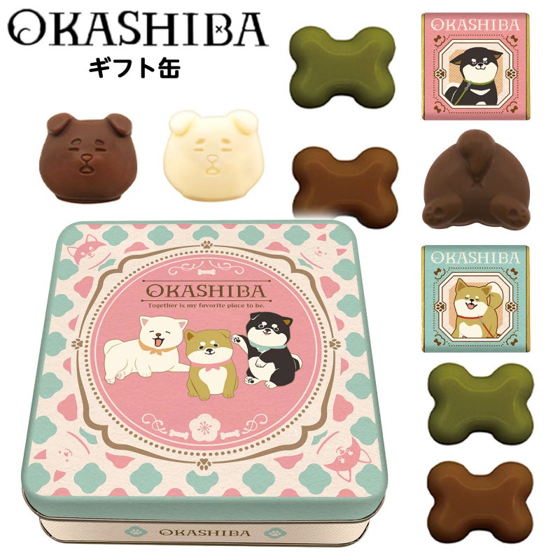 和のテイストに映えるシバ犬デザインのかわいい缶にチョコを詰め合わせた商品です。
