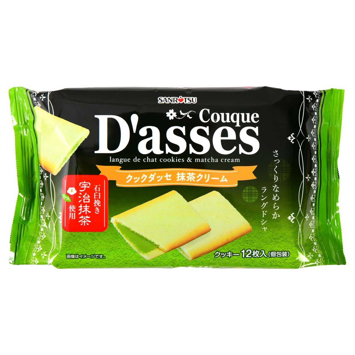 他の画像を見る 1個装あたり17円(約18.3円税込)x12個装入=204円(220円税込)期間限定!口溶けのよいラングドシャと香り豊かな抹茶クリームの組み合わせ 三立製菓 クックダッセ 抹茶クリーム 12個装入 { 駄菓子 お菓子 限定 抹茶 クッキー ビスケット spring }{ おかし おやつ 景品 お祭り 縁日 問屋 子供 子供会 まとめ買い パーティー イベント 配布 }[26C04][dmo] メーカー希望小売価格 ¥ 259 のところ 当店特別価格 ¥ 220 税込 在庫切れ 再入荷お知らせ お気に入りに登録する
