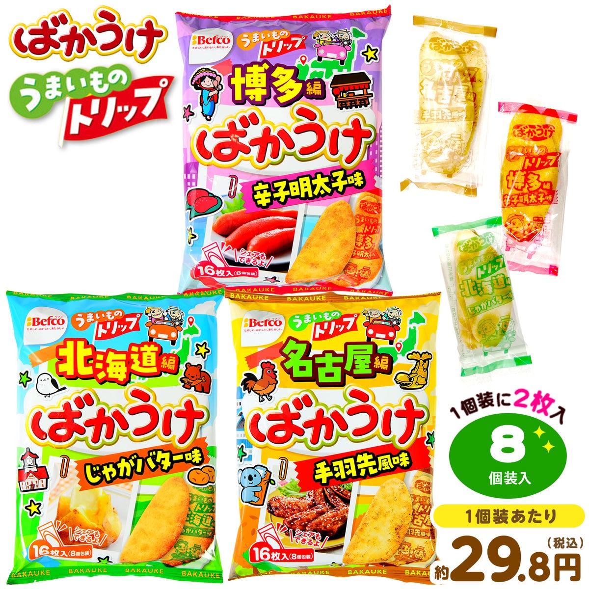 他の画像を見る 1個装あたり27.5円(約29.8円税込)x8個装入=220円(238円税込)日本を、『ばかうけ』が駆け抜ける! 栗山米菓 ご当地 ばかうけ 8個装入 { 駄菓子 お菓子 おせんべい じゃがバター 明太子 めんたいこ 手羽先 }{ おかし おやつ 景品 お祭り 夏祭り 縁日 問屋 子供会 自治会 詰め合わせ 大量 イベント 配布 個装 }[26C04][dmo] メーカー希望小売価格 ¥ 281 のところ 当店特別価格 ¥ 238 税込 在庫切れ カートに入れる お気に入りに登録する