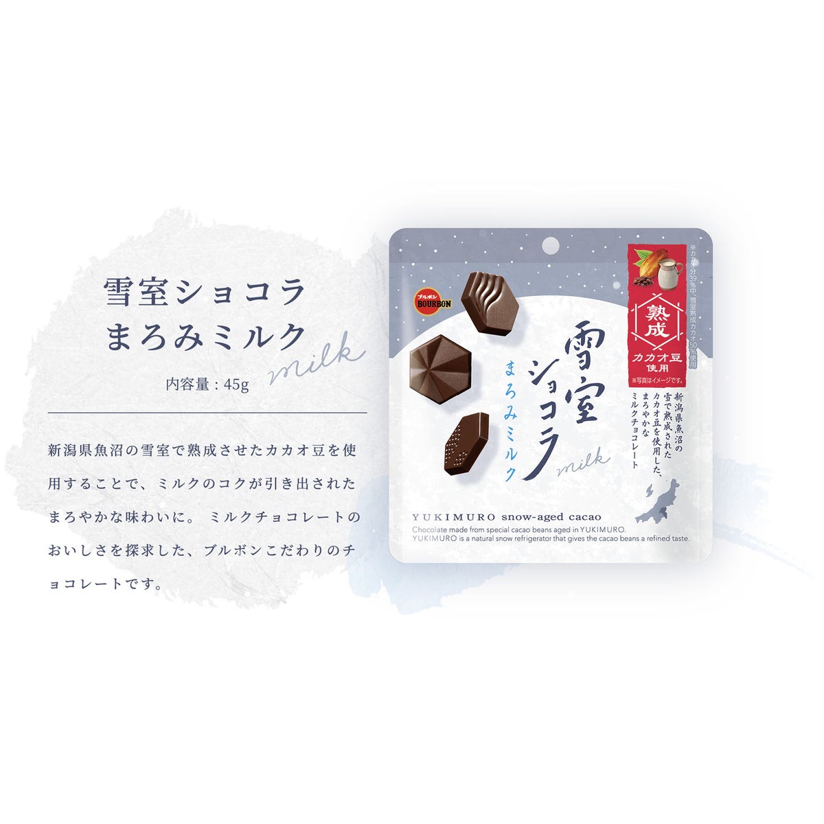他の画像を見る 1個装あたり約32.6円(約35.2円税込)x約12個装入=391円(422円税込)新潟県魚沼の雪室で熟成させたカカオ豆のまろやかなミルクチョコレート ブルボン 雪室ショコラ まろみミルク 45g(約12個装入) { 駄菓子 お菓子 チョコ チョコレート ミルク }{ お菓子 おかし おやつ 詰め合わせ パーティー イベント 配布 景品 くじ くじ引き お祭り 縁日 問屋 子供 子供会 }[26C04][dmo] メーカー希望小売価格 ¥ 497 のところ 当店特別価格 ¥ 422 税込 詳細を見る お気に入りに登録する