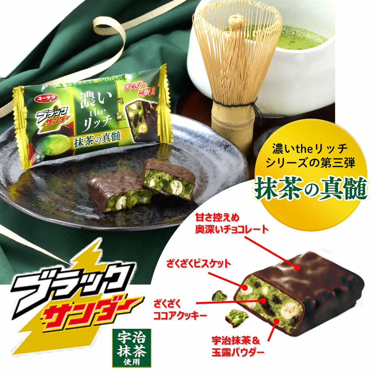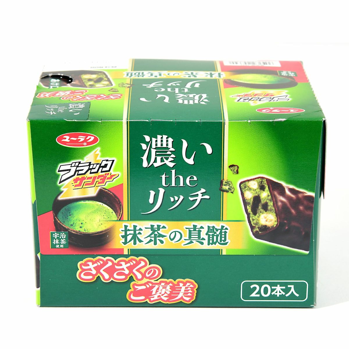 他の画像を見る 単価51円(55.1円税込)x20個装入=1020円(1102円税込)限定!宇治と玉露の本格抹茶が奏でる、大人のご褒美スイーツ 有楽製菓 ユーラク ブラックサンダー 抹茶の真髄 20個装入 { 駄菓子 お菓子 限定 濃いtheリッチ 抹茶 玉露 チョコ チョコレート }{ おかし おやつ 景品 お祭り 夏祭り 縁日 問屋 子供 子供会 自治会 詰め合わせ 大量 イベント }[25D26][dmo] メーカー希望小売価格 ¥ 1,296 のところ 当店特別価格 ¥ 1,102 税込 在庫切れ 再入荷お知らせ お気に入りに登録する