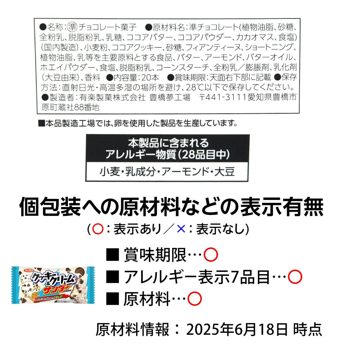 他の画像を見る 単価42.5円(45.9円税込)x20個装入=850円(918円税込)期間限定!クリーミーなホワイトチョコ&ほろ苦ココアクッキーのベストバランス 有楽製菓 ユーラク クッキー&クリームのサンダー 20個装入 { 駄菓子 お菓子 限定 クッキークリーム チョコ チョコレート }{ おかし おやつ 景品 お祭り 夏祭り 縁日 問屋 子供 子供会 自治会 詰め合わせ 大量 イベント 配布 }[25D28][dmo] メーカー希望小売価格 ¥ 1,080 のところ 当店特別価格 ¥ 918 税込 在庫切れ 再入荷お知らせ お気に入りに登録する