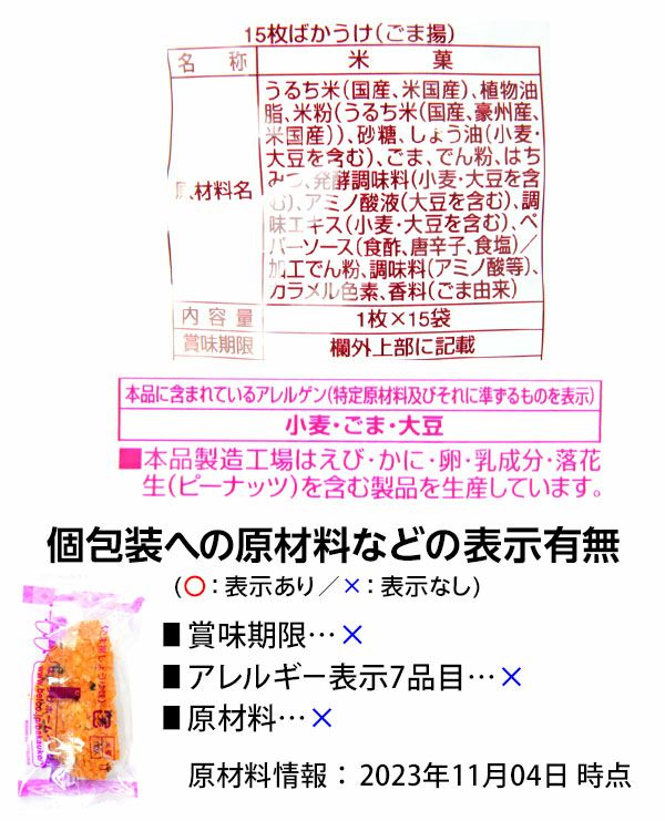 他の画像を見る 1個装あたり約13.5円(約14.5円税込)x15個装入=202円(218円税込)おやつやお茶請けに人気の個包装タイプおせんべい 栗山米菓 ばかうけ ごま揚しょうゆ味 15個装入 { 駄菓子 お菓子 おせんべい 煎餅 揚げ煎餅 }{ おかし おやつ 景品 お祭り 縁日 問屋 子供 子供会 自治会 お子様ランチ 詰め合わせ 大量 まとめ買い 保育園 幼稚園 パーティー イベント }[24I05] メーカー希望小売価格 オープン価格 のところ 当店特別価格 ¥ 218 税込 カートに入れる お気に入りに登録する