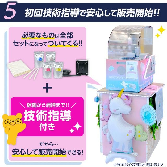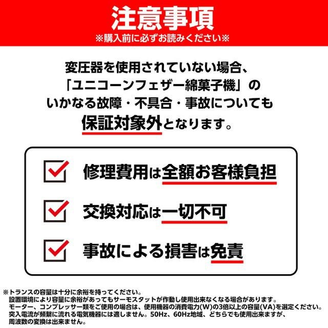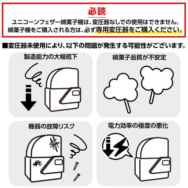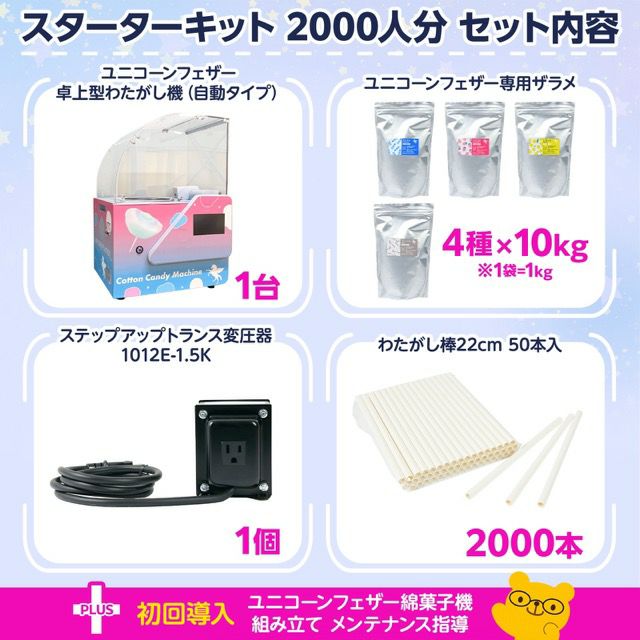 【スターターキット 2000人分】 ユニコーンフェザー 卓上型 わたがし機 (自動タイプ 変圧器セット)