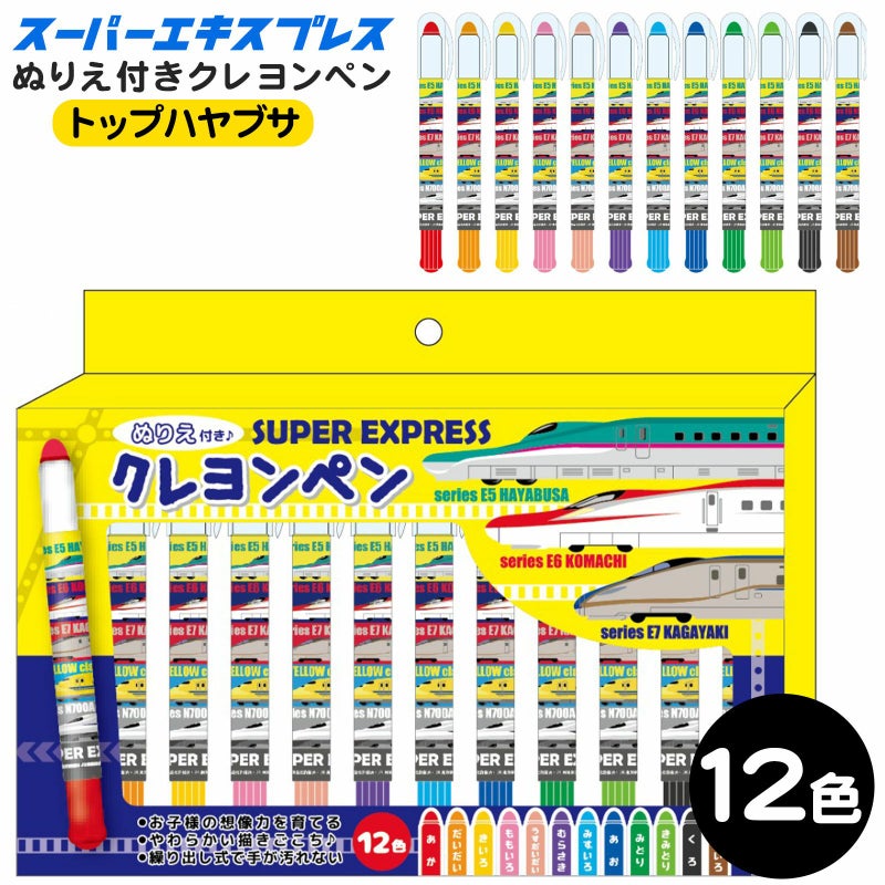 ギフトやプレゼントにおすすめ!大人気の新幹線(はやぶさ、こまち、かがやき)デザインのクレヨンペン12色セットです。