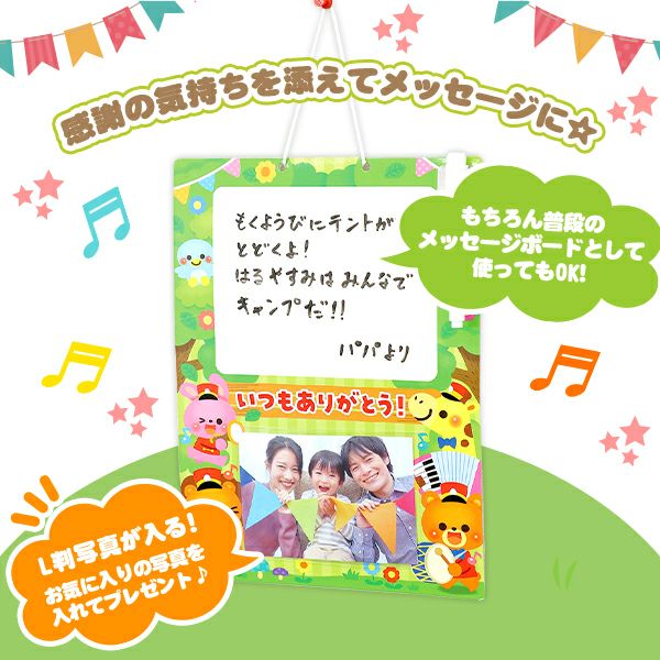 他の画像を見る ホワイトボードで親子コミュニケーション! ありがとうホワイトボード 森の音楽隊 L判写真入れ付 { ありがとう ホワイトボード フォトフレーム 写真入れ 手作り 工作 卒業 先生 母の日 父の日 プレゼント 子供 保育園 幼稚園 誕生日 ギフトカード }{ メッセージボード 壁掛け }[24E16] メーカー希望小売価格 ¥ 451 のところ 当店特別価格 ¥ 287 税込 カートに入れる お気に入りに登録する