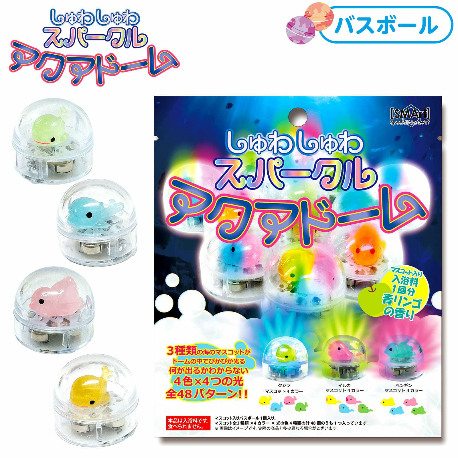 ぴかぴか光る♪バスボムが溶けると中からドームに入ったピカピカ光る海のいきものマスコットが出てくるよ!