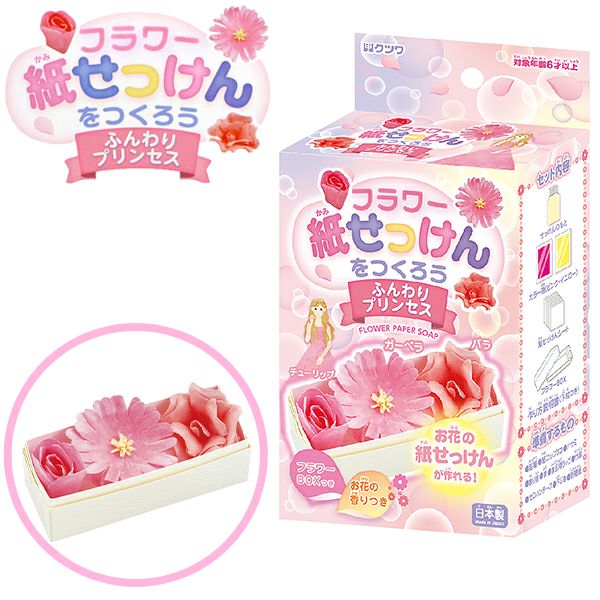 チューリップ、ガーベラ、バラの紙せっけんが作れます。フラワーBOX付き