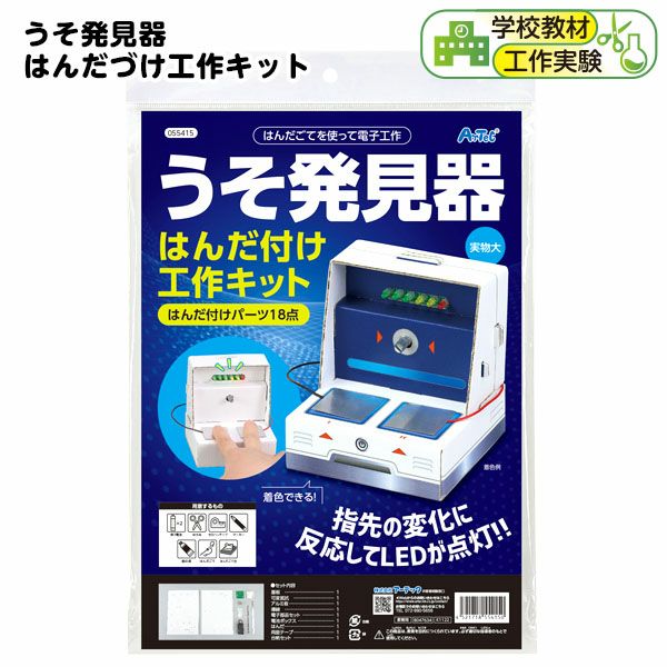 ●本製品は、汗の量で体の電気抵抗が小さくなることを学習するための科学玩具です。正確にうそを判断することはできません。