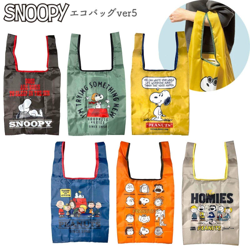 PEANUTSコミック誕生75周年記念デザインアクセントのパイピングカラーが効いたスヌーピーのかわいいエコバッグです。