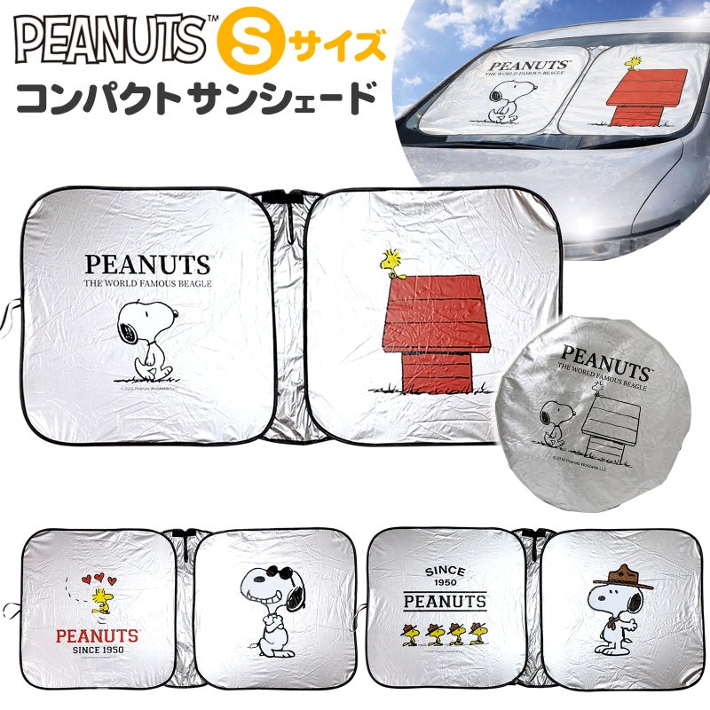 【遮熱・遮光で強い日差しをしっかりブロック!】スヌーピーデザインのコンパクトサンシェード