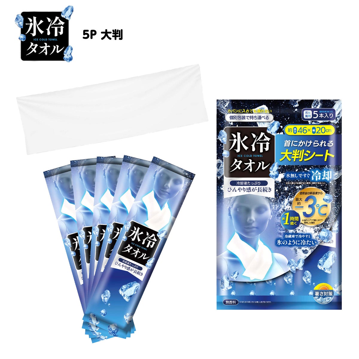氷冷タオル 5P 大判 首にかけられる 体感-3度