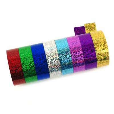 テープは約3m(色により長さにばらつきがあります。粘着テープではありません)。幅1.8cmx8色入。