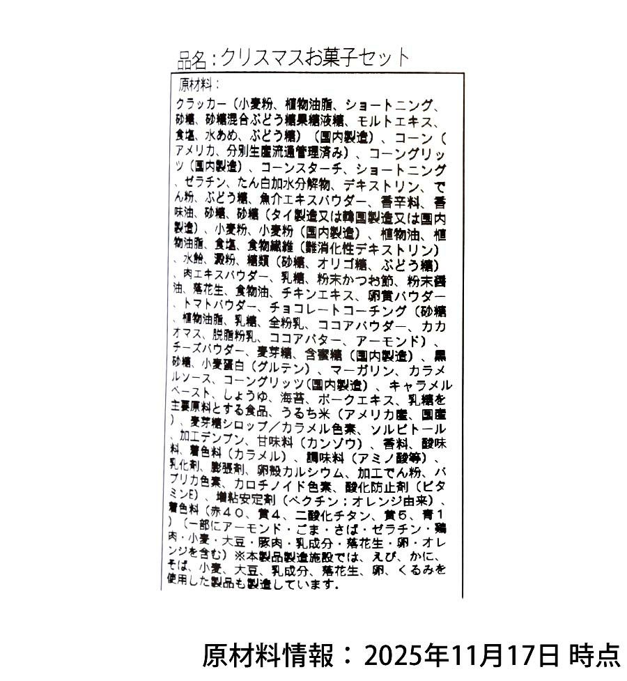 他の画像を見る クリスマス お菓子 詰め合わせ 子供クリスマス用の詰め合わせ菓子 【当店オリジナル】 クリスマス お菓子セット 人気 駄菓子 10点 詰め合わせ 小袋 { クリスマスお菓子 クリスマス お菓子 詰め合わせ セット 子供 500円 個包装 かわいい }{ 大量 景品 クリスマス会 クリスマスパーティー 子供会 プチギフト プレゼント }[25K18][dmo] メーカー希望小売価格 オープン価格 のところ 当店特別価格 ¥ 540 税込 在庫切れ 再入荷お知らせ お気に入りに登録する