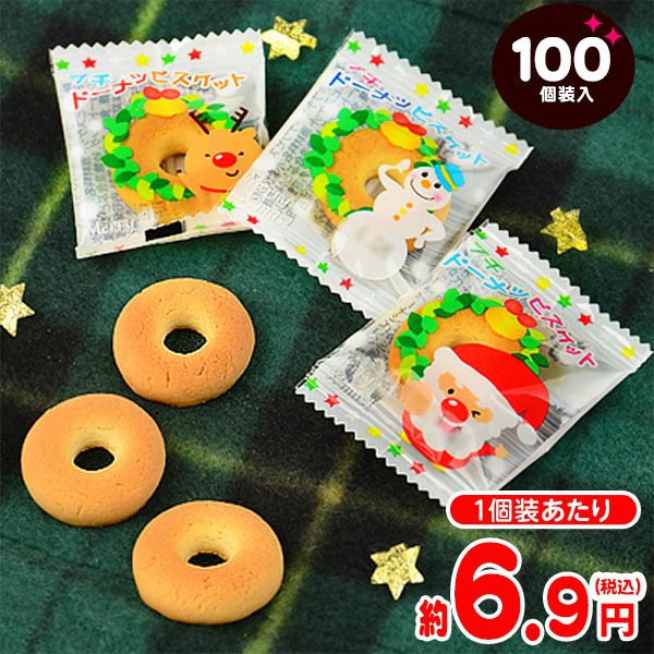 小さなドーナッツ型がかわいい「プチドーナツビスケット」にクリスマスバージョンが登場!ドーナツの丸形をクリスマスリースに見立てた粋なデザイン。サンタにスノーマン、トナカイの柄がアソートで入っていて楽しい!