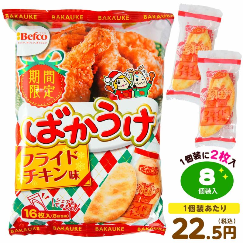 フライドチキン風ばかうけ香ばしくジューシーなチキンの旨味に、ガーリックとペッパーのスパイシーさを効かせたフライドチキン味。パーティー気分を盛り上げる、クセになるおいしさです!