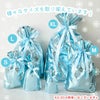 ■キラッとした光沢のあるブルーのアルミ蒸着のリボン付き巾着です。