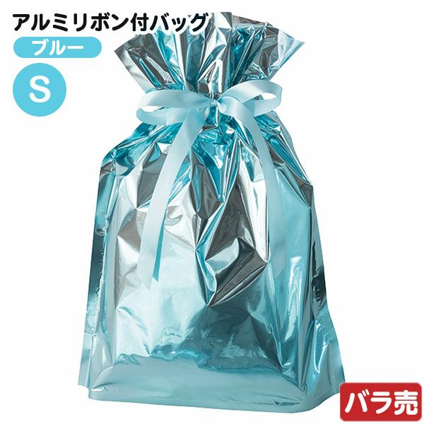 5. ABL-RBS 【バラ販売】 アルミリボン付バッグ -S ブルー 1枚 { ギフト ラッピング ラッピング ギフトバッグ 簡単 おしゃれ シンプル かわいい キラキラ 水色 }{ ラッピング用品 包装 ギフト プレゼント お土産 イベント パーティー }603[23K01]