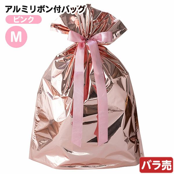 5. APN-RBM 【バラ販売】 アルミリボン付バッグ -M ピンク 1枚 { ギフト ラッピング ラッピング ギフトバッグ 簡単 おしゃれ シンプル かわいい キラキラ }{ ラッピング用品 包装 ギフト プレゼント お土産 イベント パーティー }603[23K01]