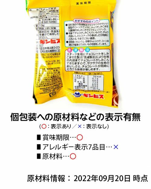 中までしみしみ!チョコの美味しさとスナックの香ばしさのハーモニー♪お子様のおやつ用や配布用に便利な食べきり、小分けパックです。