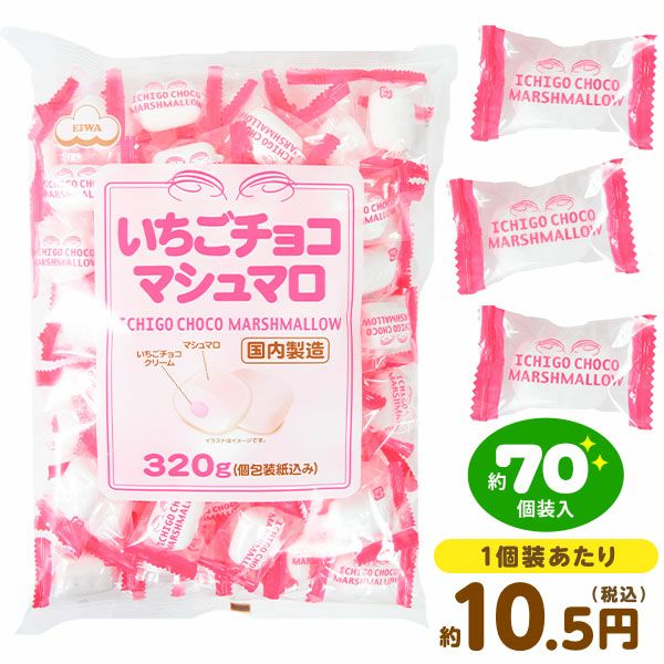 大量配布にお得!業務用なめらかに美味しく仕上げたいちごチョコクリームをふわふわなマシュマロで包んだ、ロングセラー商品の大容量タイプです。