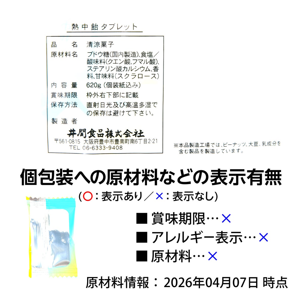 他の画像を見る 1粒に塩分量約300mg配合!「元気補給」「夏バテ対策」「さっぱりレモン味」でリフレッシュ! 熱中飴 タブレット 業務用 620g { 駄菓子 お菓子 飴 あめ アメ タブレット 熱中症 対策 業務用 スポーツ 夏 レモン 塩分補給 }{ おかし おやつ 景品 お祭り 夏祭り 縁日 問屋 子供会 自治会 詰め合わせ 大量 イベント 配布 }[26C28][dmo] メーカー希望小売価格 オープン価格 のところ 当店特別価格 ¥ 2,355 税込 カートに入れる お気に入りに登録する