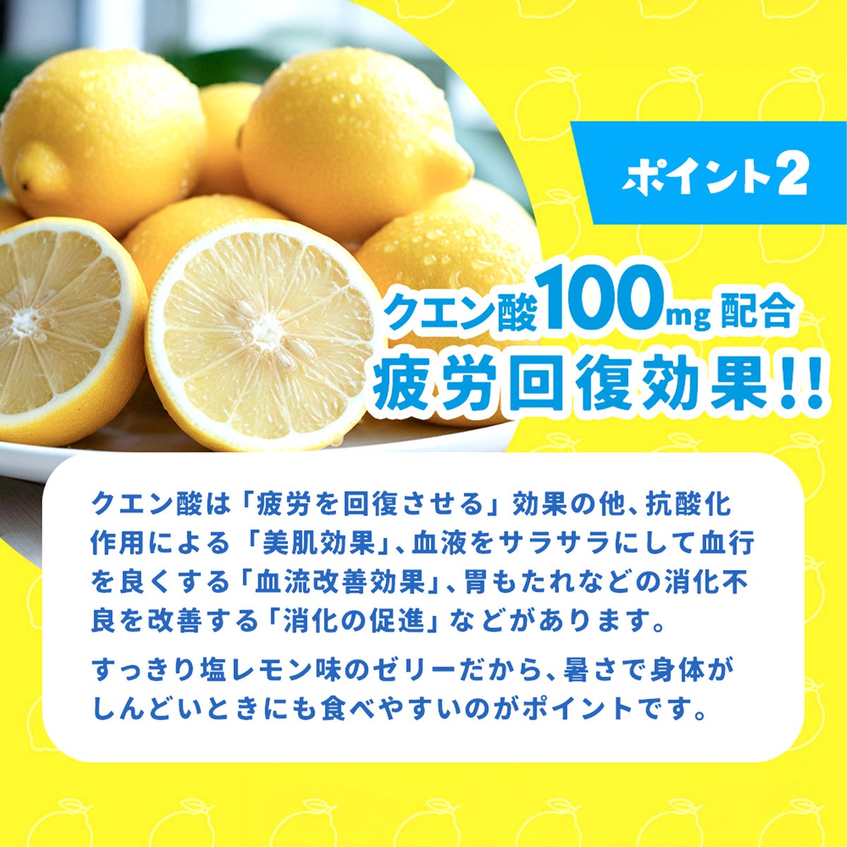 他の画像を見る 「元気補給」「夏バテ対策」さっぱりレモン味でリフレッシュ! 塩分チャージ 塩レモンゼリー 業務用 450g { 駄菓子 お菓子 ゼリー レモン 熱中症対策 塩分補給 スポーツ 夏 }{ おかし おやつ 景品 お祭り 夏祭り 縁日 問屋 子供 子供会 自治会 詰め合わせ 大量 パーティー イベント 配布 }[26C31][dmo] メーカー希望小売価格 ¥ 702 のところ 当店特別価格 ¥ 432 税込 在庫切れ 再入荷お知らせ お気に入りに登録する
