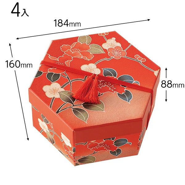 他の画像を見る 外寸:幅184×高さ88×奥行160mm1個あたり830円(913円税込)x4個入=3320円(3652円税込) WA-HBM 和風六角貼箱-M 4個 { ギフト ラッピング ラッピング 迎春 年賀 正月 和風 箱 ギフトボックス 高級 赤 梅 花 }{ ラッピング用品 プレゼント お土産 包装 イベント パーティー }603[25H23] メーカー希望小売価格 オープン価格 のところ 当店特別価格 ¥ 3,652 税込 カートに入れる お気に入りに登録する