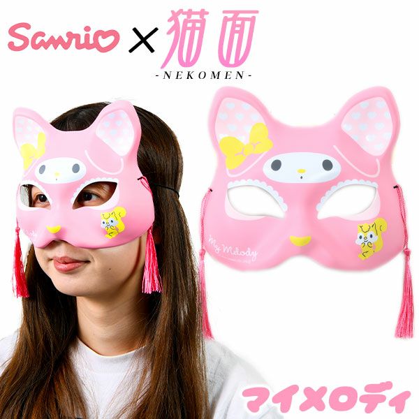 口元が開いた半面タイプのデザインがかわいいマイメロディの猫面です。