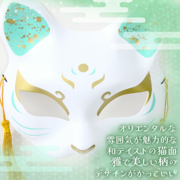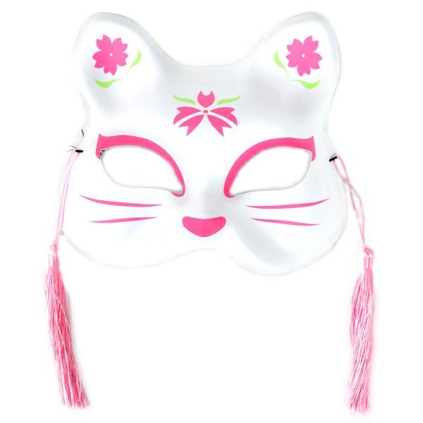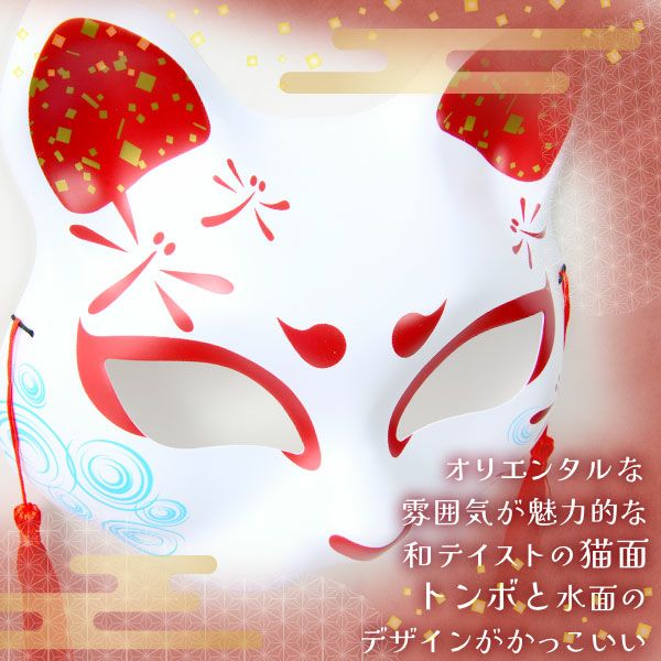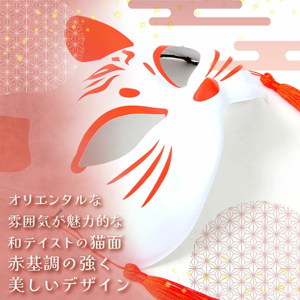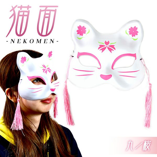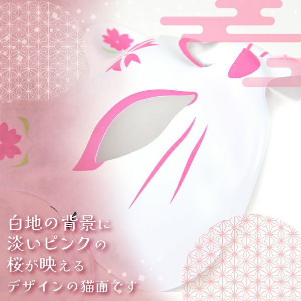 { おめん 猫 ネコ ねこ 半面 仮面 きつね キツネ 狐 マスク }{ 幼稚園 夏祭り 景品 子供会 お祭り 縁日 お面 コスプレ 仮装 パーティー 小道具 大人 和風 さくら 桜 }[25G31]
