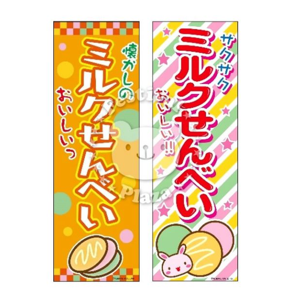 5. 『ミルクせんべい』のぼり/のぼり旗サイズ:約60cm×180cm { イベント 景品 お祭り くじ引き 縁日 屋台 夏祭り 夜店 露店 夕涼み会 納涼祭 文化祭 学園祭 }[24B06]