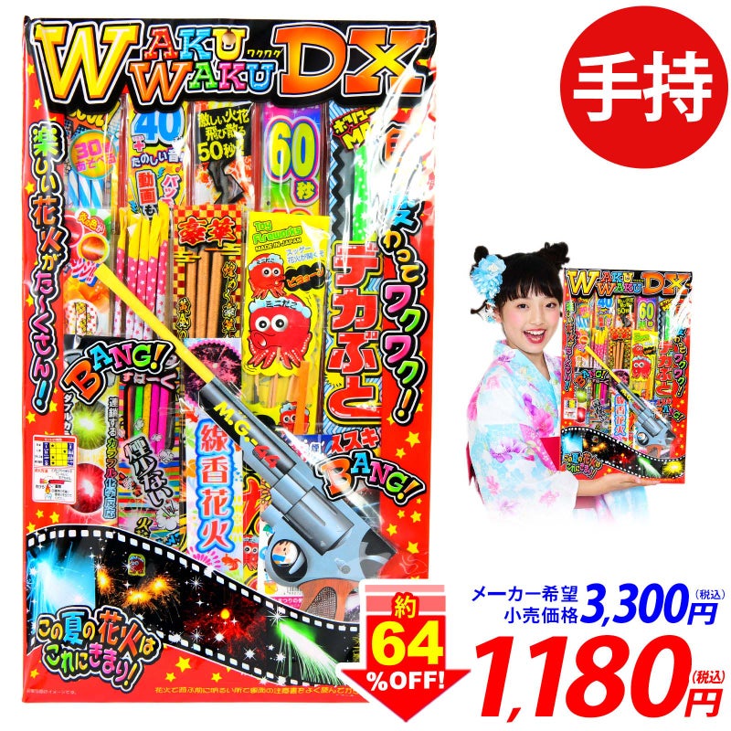 ワクワク感いっぱいの花火セット手持花火の他に、「ミニダコ」や「ピストル花火」など、ひと味違う花火が入っているので、大人から子供まで楽しむことができます。