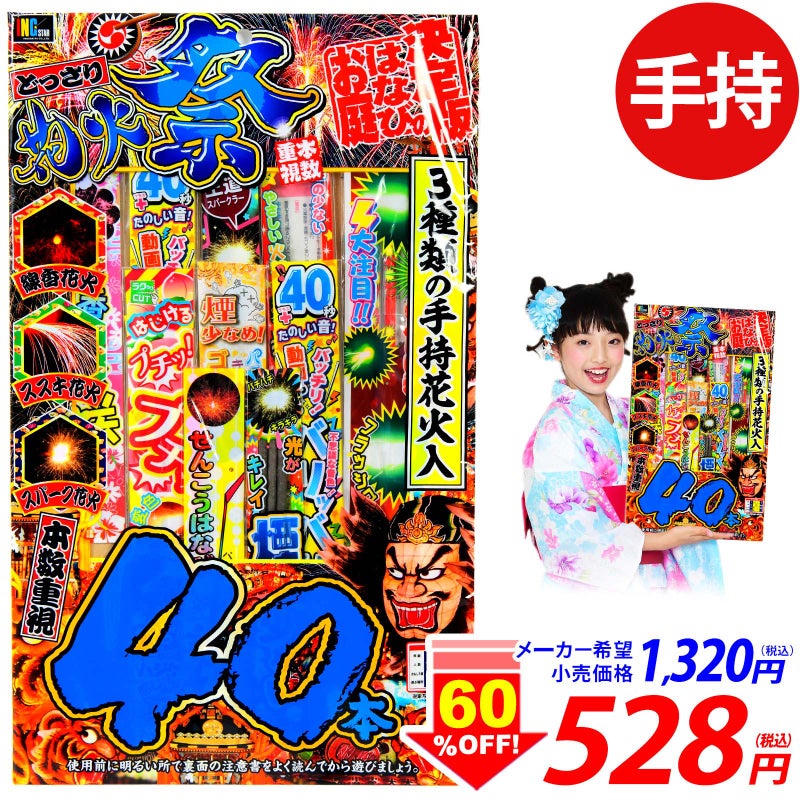 どっさり40本の花火セット本数重視でボリューム満点の花火セットです。