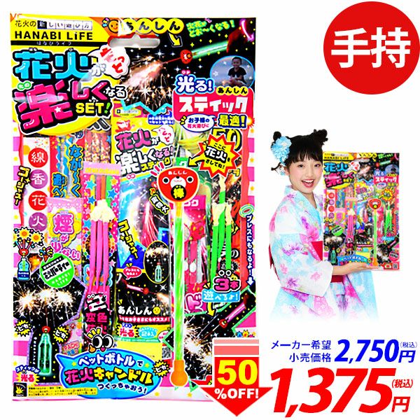 他の画像を見る 手持ち 花火 セット花火に慣れていない子どもも安心して楽しめる花火セット もっと花火が楽しくなるセット 花火セット 手持花火 手持ち花火 手持ち 花火 セット { 花火 はじめての花火 安心 子供 子ども キッズ }{ 花火 花火セット キャンプ アウトドア イベント 縁日 問屋 子供会 手持ち花火 夏休み }101[24D30] 沖縄・離島発送不可 メーカー希望小売価格 ¥ 2,750 のところ 当店特別価格 ¥ 1,375 税込 カートに入れる お気に入りに登録する