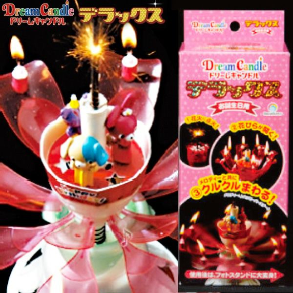 スパークに点火するとクルクルとまわりながらミュージック(ハッピーバースディトゥユー)とともにローソクの花が咲きほこる、花火とキャンドルの融合がパーティーに花を添えます。