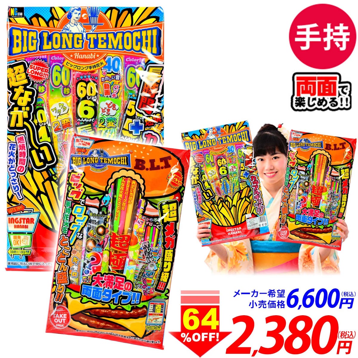 他の画像を見る 手持ち花火セットが約64%OFF!!手持ち 花火 セットビッグでロングな手持ち花火でたくさん楽しめる♪ B.L.T.HANABI メガダブル 花火セット 手持花火 手持ち花火 手持ち 花火 セット { 花火 }{ 花火 花火セット キャンプ アウトドア BBQ イベント 縁日 景品 問屋 お祭り 子供会 自治会 人気 手持ち花火 夏休み }[26C19][dmo] メーカー希望小売価格 ¥ 6,600 のところ 当店特別価格 ¥ 2,380 税込 カートに入れる お気に入りに登録する