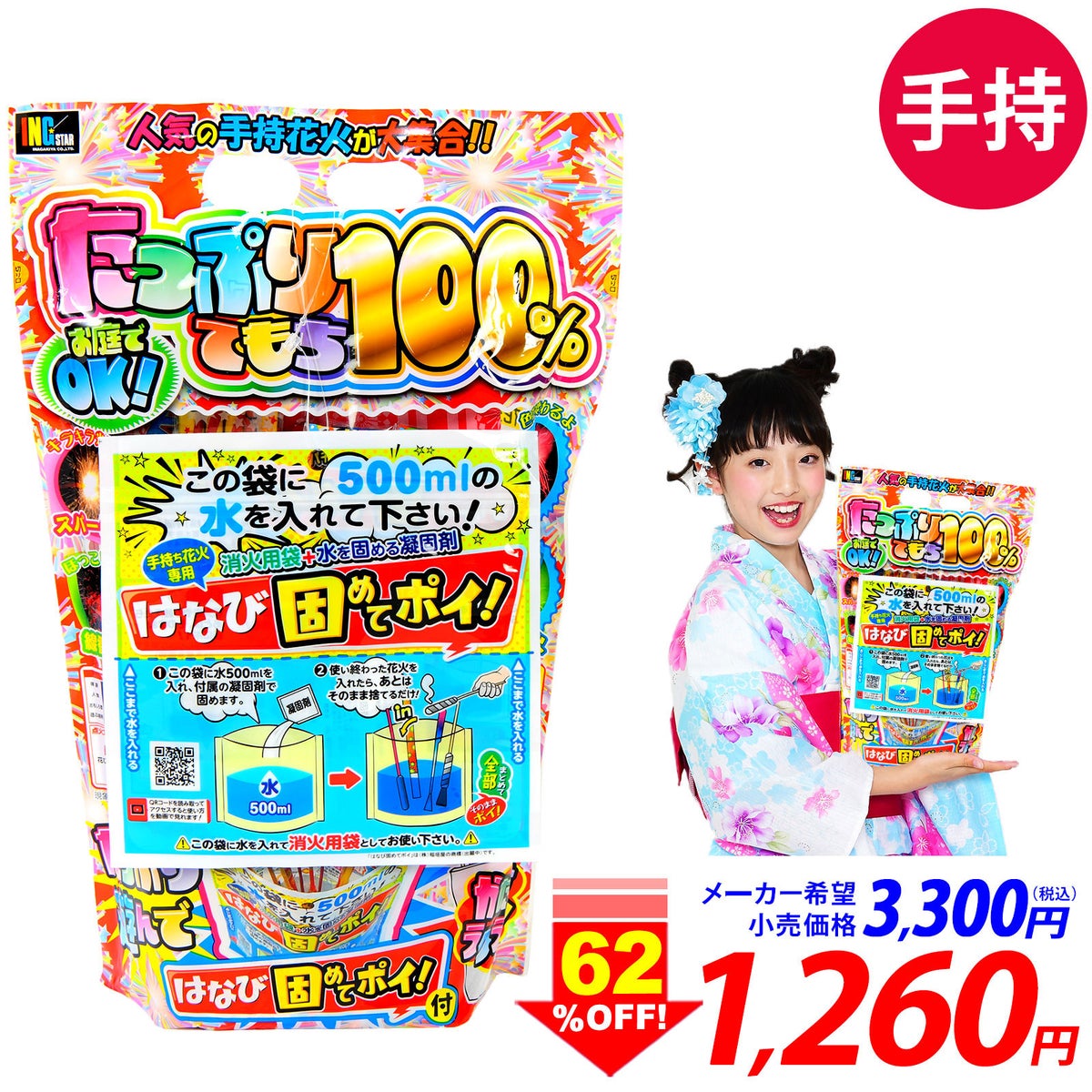 他の画像を見る 手持ち花火セットが約62%OFF!!手持ち 花火 セットボリューム重視派に!たっぷり100本セット たっぷりてもち 100% 花火セット 手持花火 手持ち花火 手持ち 花火 セット { 花火 }{ 花火 花火セット キャンプ アウトドア BBQ イベント 縁日 景品 問屋 お祭り 子供会 自治会 人気 手持ち花火 手持ち 夏休み }[26C19][dmo]{即日出荷 配送区分A} メーカー希望小売価格 ¥ 3,300 のところ 当店特別価格 ¥ 1,260 税込 カートに入れる お気に入りに登録する