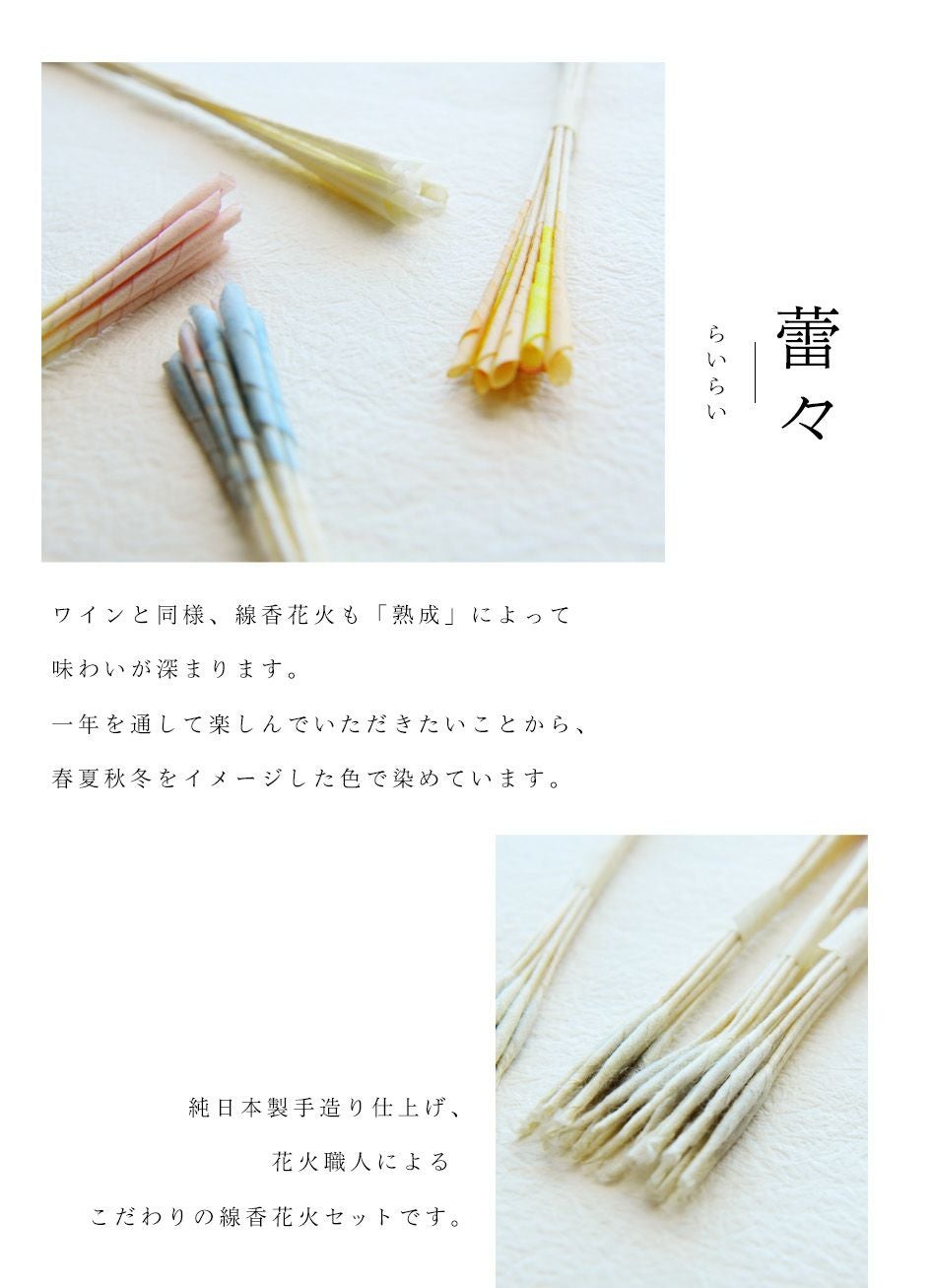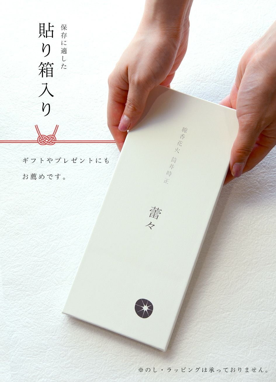 他の画像を見る 手持ち 花火巧が作る線香花火筒井時正玩具花火製造所線香花火を、和紙にて縒っております。 国産 線香花火 『蕾々』32本入筒井時正玩具花火製造所 手持花火 手持ち花火 手持ち 花火 { 花火 線香花火 国産 日本 お中元 夏ギフト 夏 }{ 花火 手持ち花火 ギフト プレゼント 夏休み }303[23H10] 沖縄・離島発送不可{即日出荷 配送区分A} メーカー希望小売価格 ¥ 3,850 のところ 当店特別価格 ¥ 3,785 税込 カートに入れる お気に入りに登録する